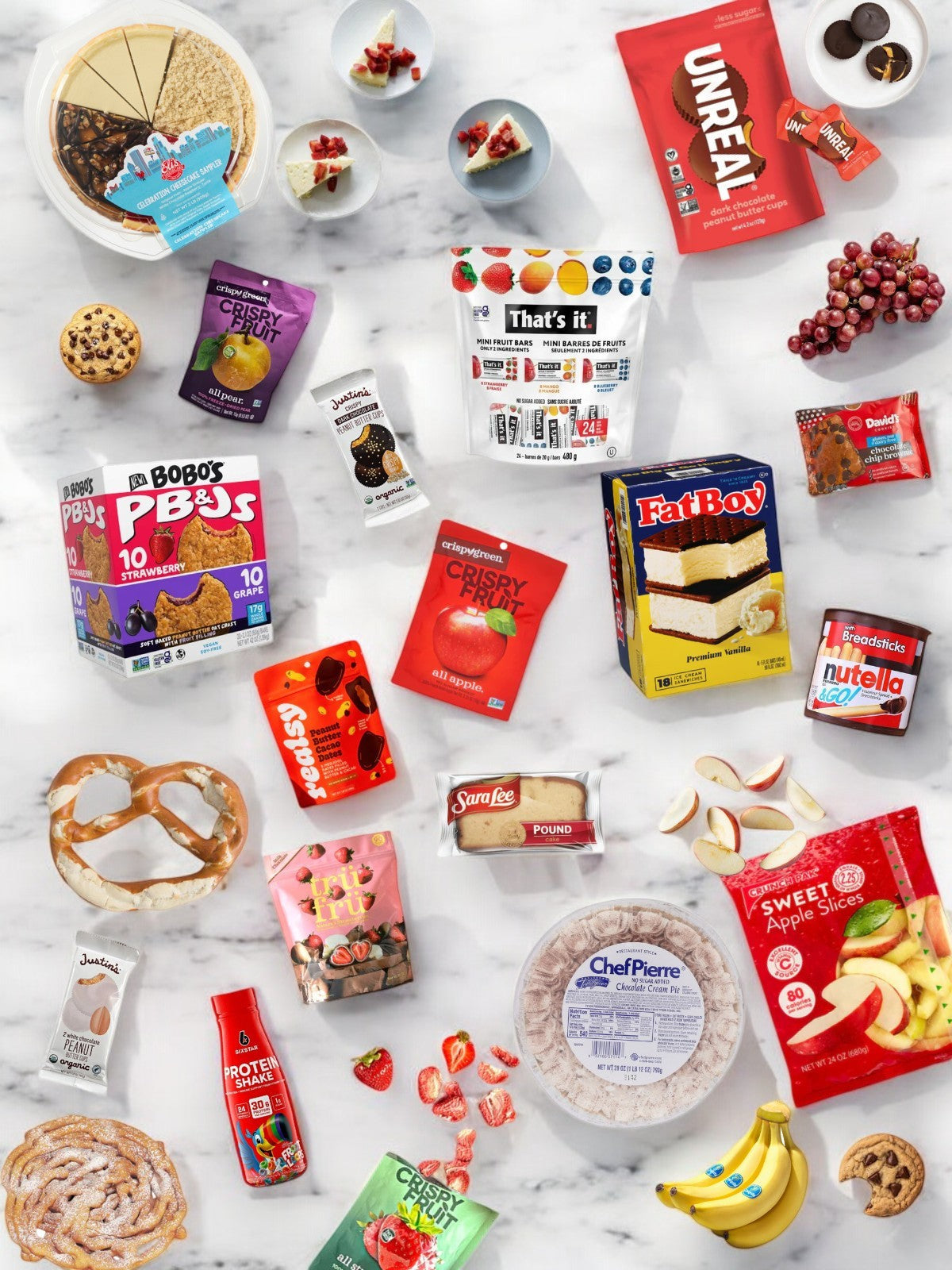 Sweet Street Cupcake Assorted, 1 Case, 8 Packs, 32 Count TotalA case of Sweet Street Cupcake Assorted, containing 8 packs and 32 cupcakes in flavors like jelly roll, red velvet, peanut butter, lemon drop, vanilla bean, and chocolate creme, sits enticingly on a marble surface.